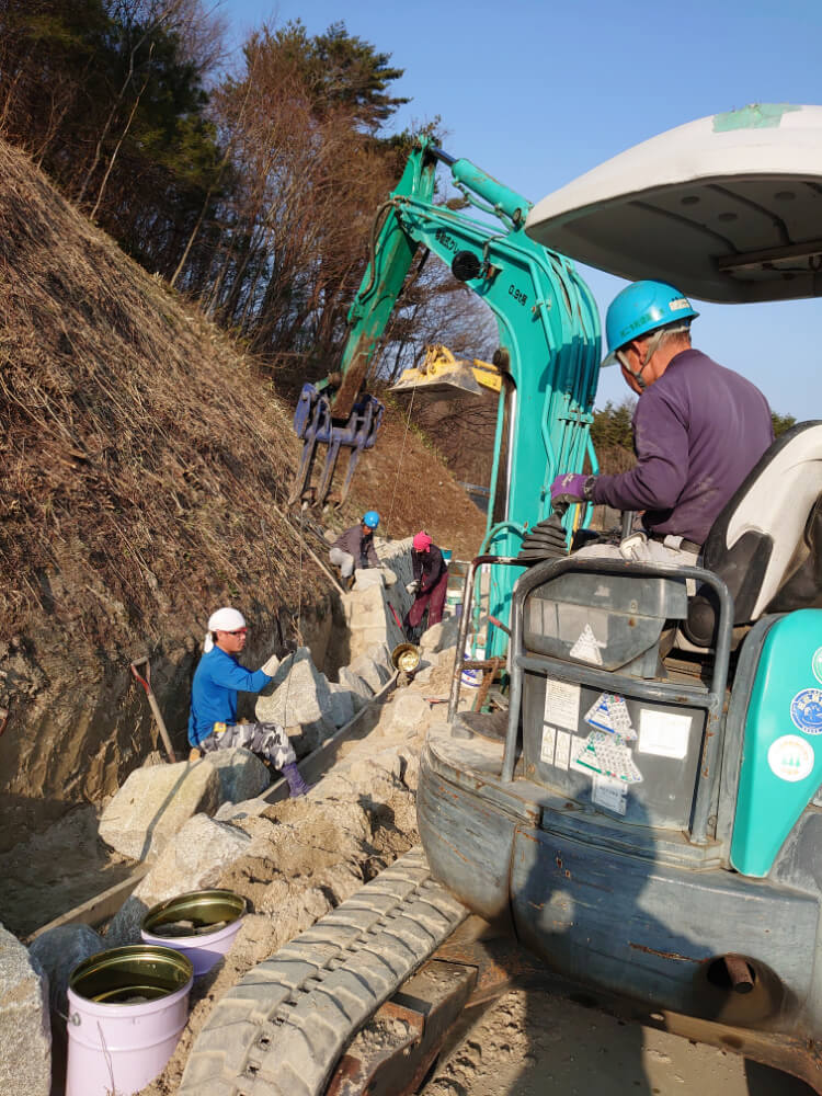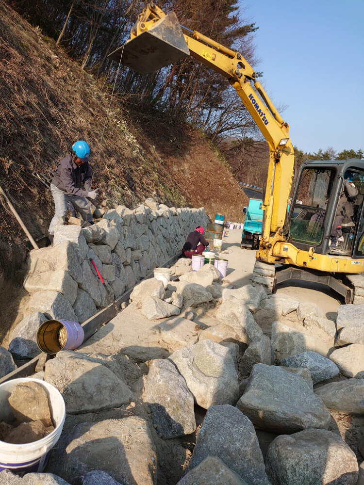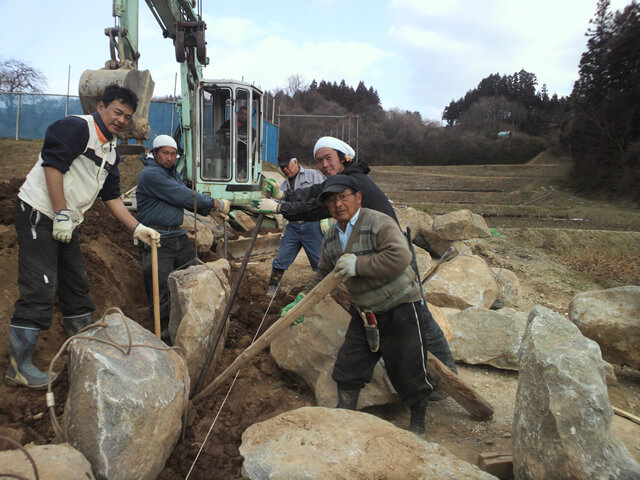 アプローチ 法面石積施工中②