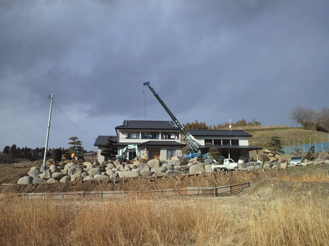アプローチ 法面石積施工中①