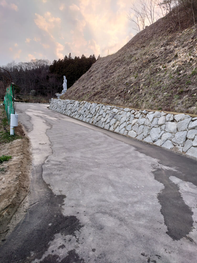 アプローチ 法面石積施工後