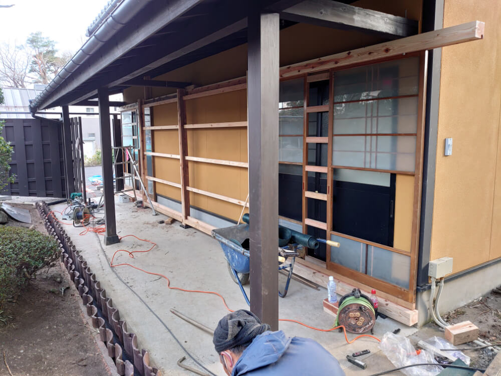 御簾垣施工状況