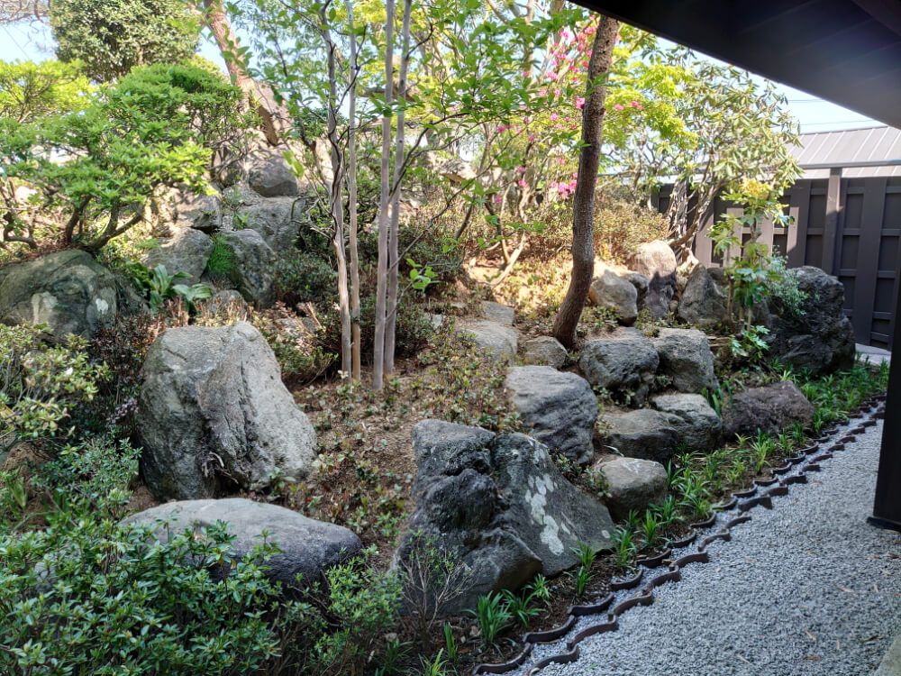 法面庭石据付植栽完了