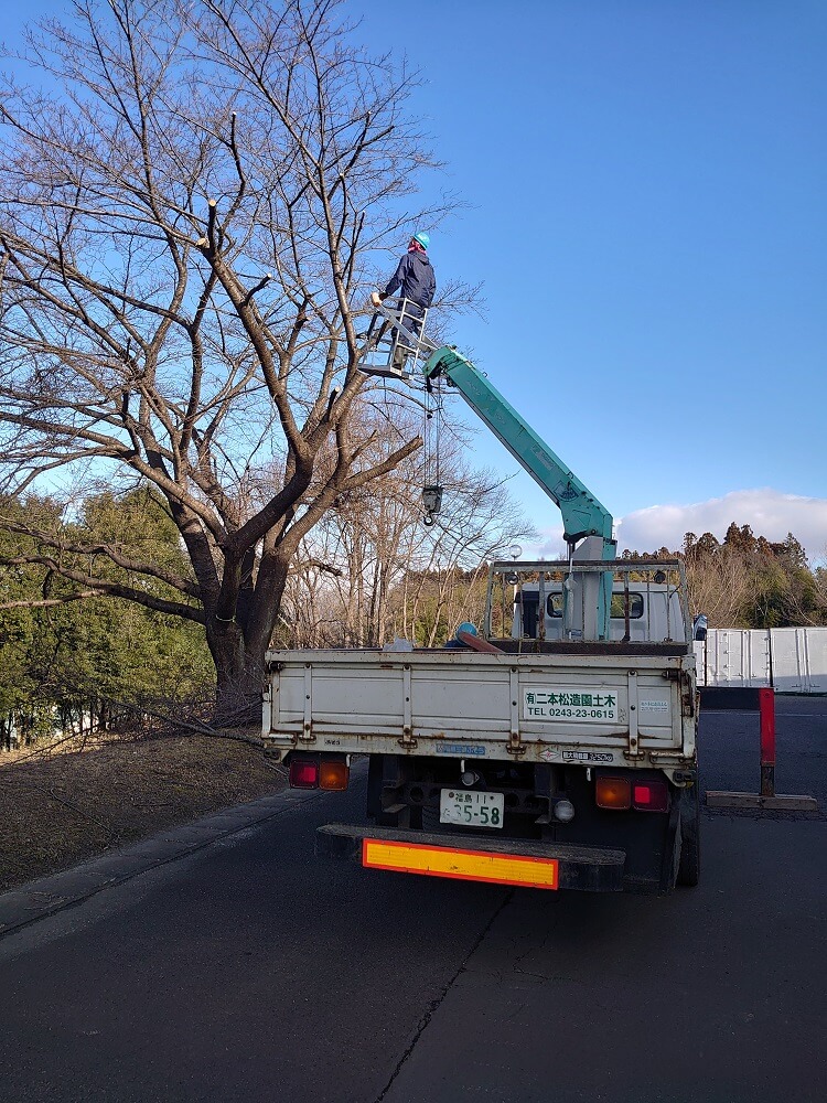 高所作業車による剪定作業①