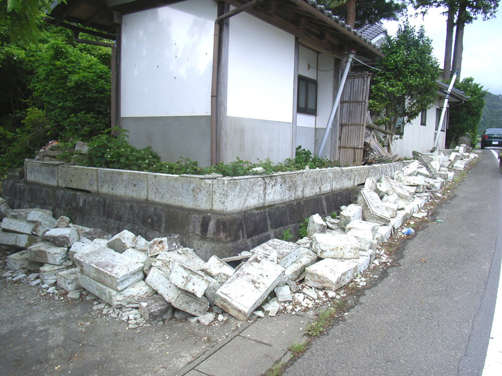 地震による石蔵のズレ